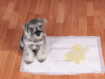 Until they’re a little older, you can minimize the mess by giving them a specific potty spot to use—for example, in a corner of their crate or off to the side of their room or playpen.