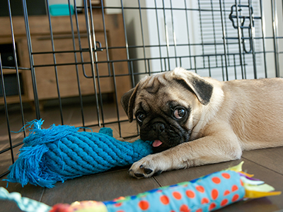 If made comfortable from the beginning, a crate can become your puppy’s personal “safe space,” a place where they feel happy and secure. Choose one that's just large enough for your puppy to comfortably stand up, turn around and lie down.